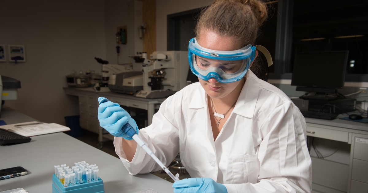 Pictured: Carleigh Cimmerer, '20, '22, working in the chemistry lab at Buffalo State.