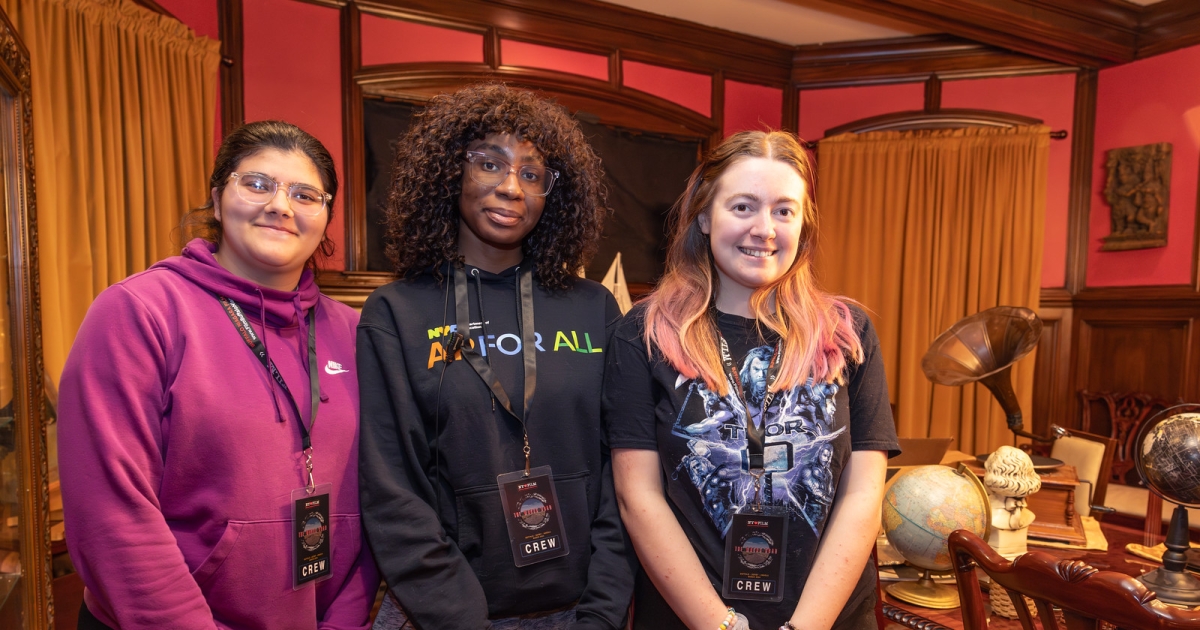 Ajayi and other Buffalo State undergraduate students, many enrolled in the spring 2024 course TFA 480: Advanced Directing/Producing I, made up the majority of the 50-person production crew for The Wrong Road—the largest production of a Fontana script ever filmed in Western New York. The 30-minute film follows a young man on a cross-state drive who gets lost and finds himself at a mansion where two strangers seem to know all the details of his complex life. The project provided valuable real-world experience for students pursuing careers in television and film arts.